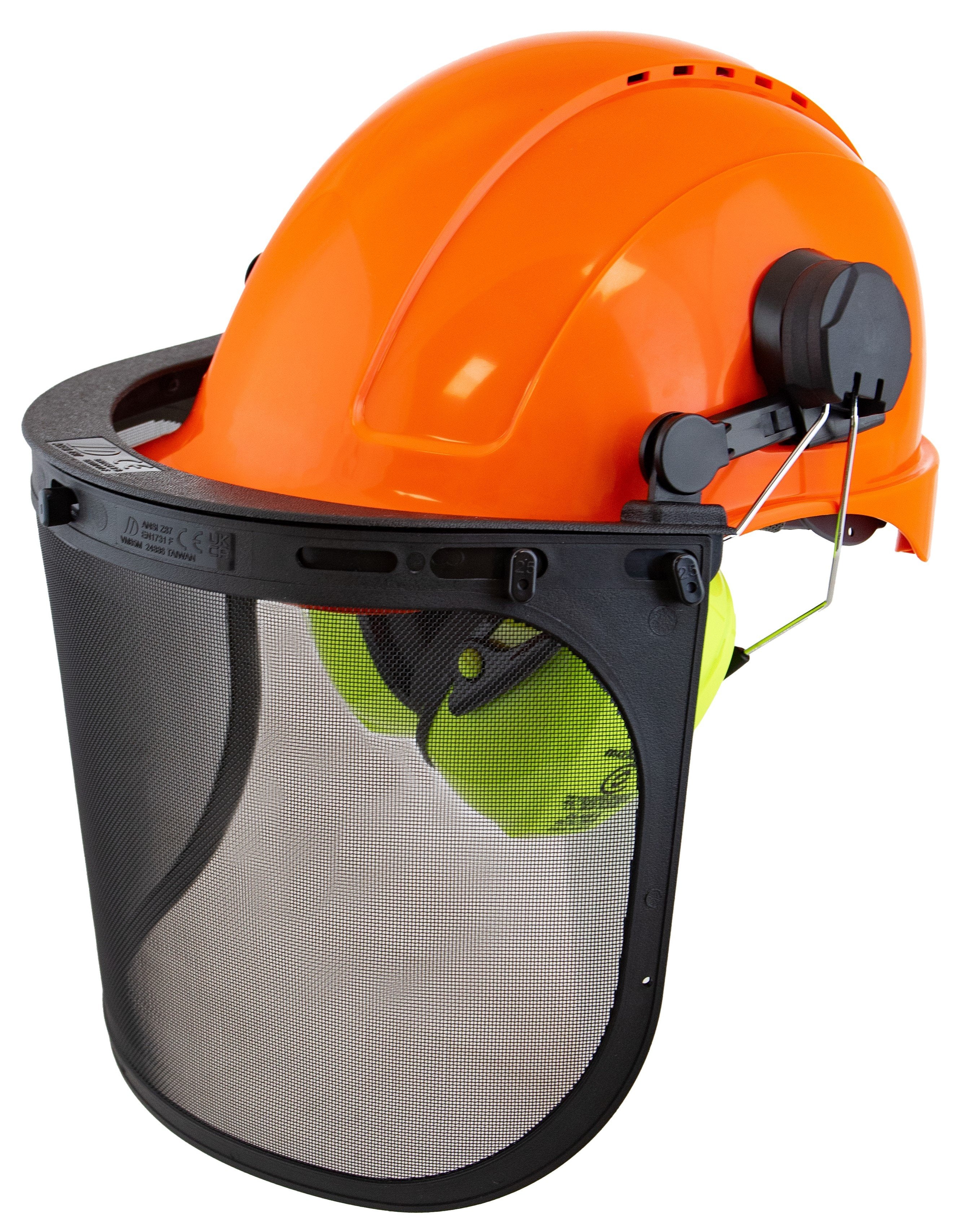 Professional Forestry Kit with Earmuffs , Mesh Visor and White H/Hat